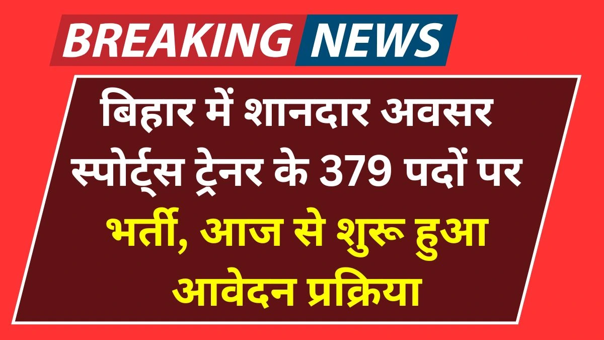 BSSC Sports Trainer Recruitment: बिहार कर्मचारी चयन आयोग (BSSC) ने खेल क्षेत्र से जुड़े उम्मीदवारों के लिए एक शानदार अवसर प्रदान किया है। आयोग ने स्पोर्ट्स ट्रेनर के 379 पदों पर भर्ती के लिए नोटिफिकेशन जारी किया है। इस भर्ती के लिए आवेदन प्रक्रिया आज से शुरू हो चुकी है। इच्छुक उम्मीदवार आयोग की आधिकारिक वेबसाइट पर जाकर ऑनलाइन आवेदन कर सकते हैं।